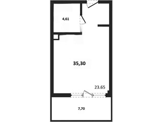 В продаже имеются студио-апартаменты с отделкой в жилом комплексе "Garden" премиум-класса. Общая площадь составляет 35.31 кв.м., при этом жилая зона с кухней занимает 23.6 кв.м. Все окна выходят на одну сторону. В квартире есть лоджия и санузел. Высота потолков достигает 2.7 м.