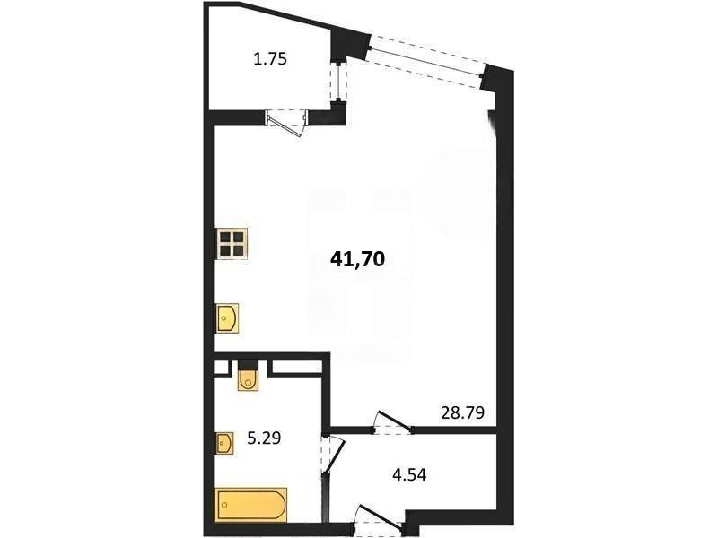 В продаже имеются студио-апартаменты с отделкой в жилом комплексе "Garden" премиум-класса. Общая площадь составляет 41,7 кв.м., при этом жилая зона с кухней занимает 28,79 кв.м. Все окна выходят на одну сторону. В квартире есть лоджия и санузел. Высота потолков достигает 2.7 м.