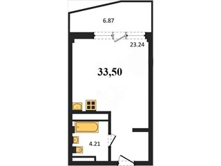 В продаже имеются студио-апартаменты с отделкой в жилом комплексе "Garden" премиум-класса. Общая площадь составляет 33,5 кв.м., при этом жилая зона с кухней занимает 23,24 кв.м. Все окна выходят на одну сторону. В квартире есть лоджия и санузел. Высота потолков достигает 2.7 м.
