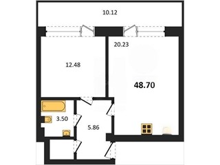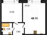 В продаже имеются квартиры в жилом комплексе "Аквамарин Park" премиум-класса. Общая площадь составляет 48,71 кв.м., при этом кухня - 20,23 кв.м. Высота потолков достигает 3 м.