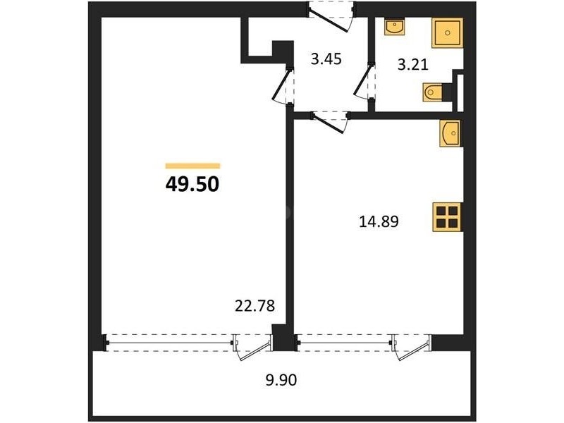В продаже имеются квартиры в жилом комплексе "Аквамарин Park" премиум-класса. Общая площадь составляет 49,5 кв.м., при этом кухня - 14,89 кв.м. Высота потолков достигает 3 м.