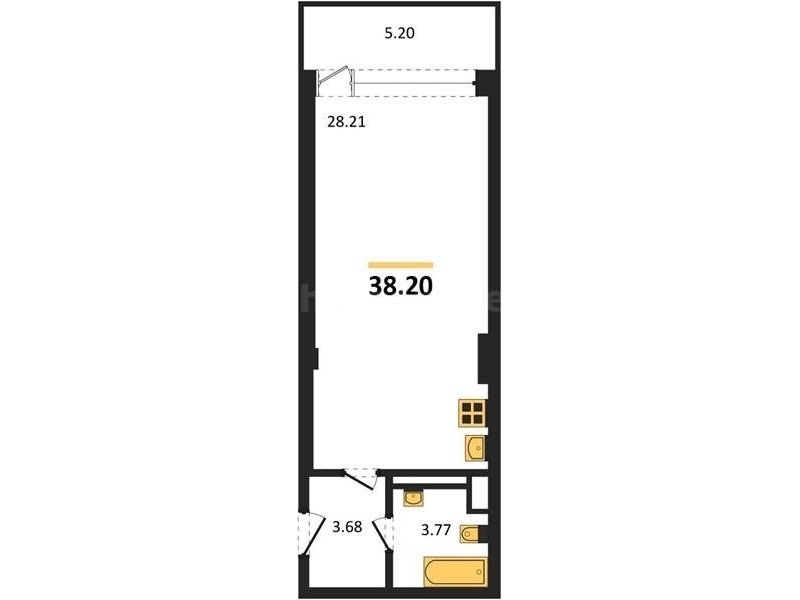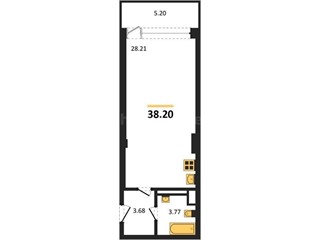 В продаже имеются квартиры в жилом комплексе "Аквамарин Park" премиум-класса. Общая площадь составляет 38,2 кв.м., при этом кухня - 28,21 кв.м. Высота потолков достигает 3 м.