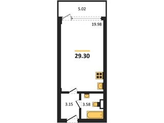 В продаже имеются квартиры в жилом комплексе "Аквамарин Park" премиум-класса. Общая площадь составляет 29,302 кв.м., при этом кухня - 19,98 кв.м. Высота потолков достигает 3 м.