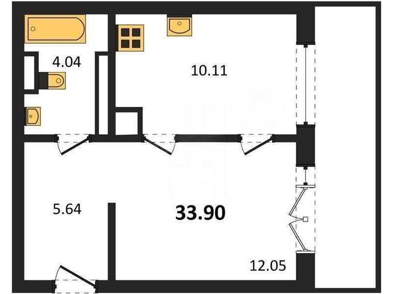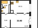 В продаже имеются квартиры в жилом комплексе "Олимпия 2.0" премиум-класса. Общая площадь составляет 33,9 кв.м., при этом жилая зона с кухней занимает 10,11 кв.м. Все окна выходят на одну сторону. В квартире есть лоджия и санузел. Высота потолков достигает 2.7 м.
