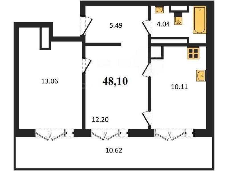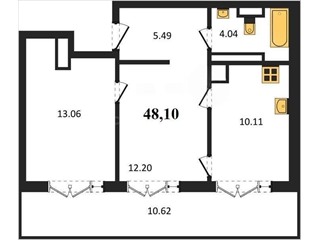В продаже имеются квартиры в жилом комплексе "Олимпия 2.0" премиум-класса. Общая площадь составляет 48,1 кв.м., при этом жилая зона с кухней занимает 10,11 кв.м. Все окна выходят на одну сторону. В квартире есть лоджия и санузел. Высота потолков достигает 2.7 м.
