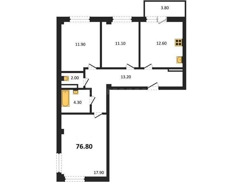 В продаже имеются квартиры в жилом комплексе "Доброгород" премиум-класса. Общая площадь составляет 76,8 кв.м., при этом кухня - 12,6 кв.м. Высота потолков достигает 2,8 м.