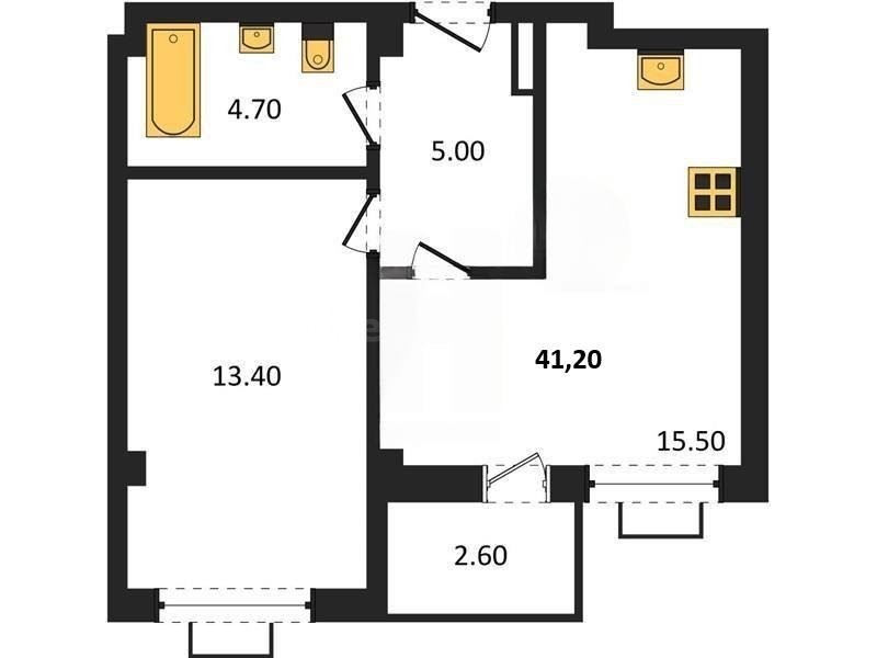В продаже имеются квартиры в жилом комплексе "Дом на Маячной" премиум-класса. Общая площадь составляет 41,21 кв.м., при этом кухня - 15,5 кв.м. Высота потолков достигает 2,8 м.
