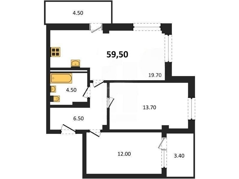 В продаже имеются квартиры в жилом комплексе "Аzimut" премиум-класса. Общая площадь составляет 59.5 кв.м., при этом кухня - 19,7 кв.м. Высота потолков достигает 2,8 м.