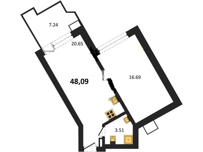 В продаже имеются апартаменты с отделкой в жилом комплексе "Песок и море" премиум-класса. Общая площадь составляет 48,09 кв.м., при этом жилая зона с кухней занимает 20,65 кв.м. Все окна выходят на одну сторону. В квартире есть лоджия и санузел. Высота потолков достигает 2.7 м.