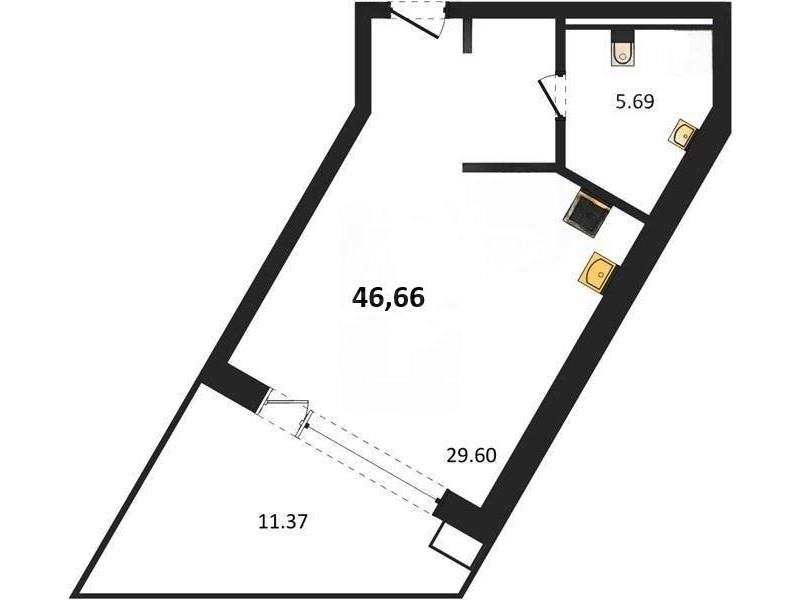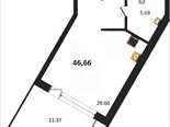 В продаже имеются студио-апартаменты с отделкой в жилом комплексе "Песок и море" премиум-класса. Общая площадь составляет 46,66 кв.м., при этом жилая зона с кухней занимает 29,6 кв.м. Все окна выходят на одну сторону. В квартире есть лоджия и санузел. Высота потолков достигает 2.7 м.