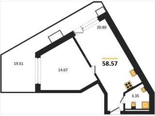 В продаже имеются апартаменты с отделкой в жилом комплексе "Песок и море" премиум-класса. Общая площадь составляет 58,57 кв.м., при этом жилая зона с кухней занимает 20,8 кв.м. Все окна выходят на одну сторону. В квартире есть лоджия и санузел. Высота потолков достигает 2.7 м.