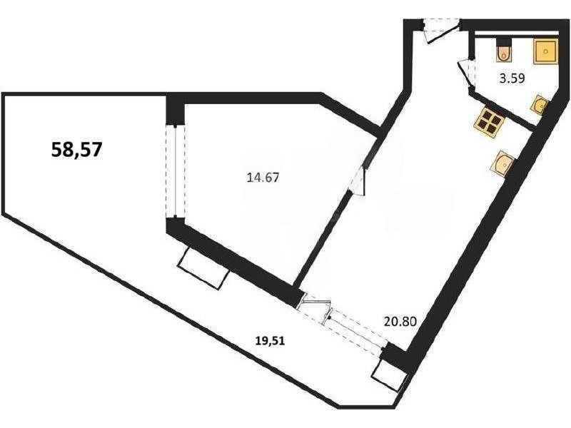 В продаже имеются апартаменты с отделкой в жилом комплексе "Песок и море" премиум-класса. Общая площадь составляет 58,57 кв.м., при этом кухня занимает 20,8 кв.м. Все окна выходят на одну сторону. В квартире есть лоджия и санузел. Высота потолков достигает 2.7 м.