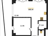 В продаже имеются апартаменты с полной отделкой, бытовой техникой, текстильным инвентарем и мебелью в жилом комплексе "Cosmos Stay" премиум-класса. Общая площадь составляет 101,8 кв.м., при этом кухня занимает 22,98 кв.м. Все окна выходят на одну сторону. В квартире есть лоджия и санузел. Высота потолков достигает 2.9 м.