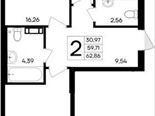 В продаже имеются квартиры в жилом комплексе "Семисчастье" премиум-класса. Общая площадь составляет 62,861 кв.м., при этом кухня - 12,25 кв.м. Высота потолков достигает 2,7 м.