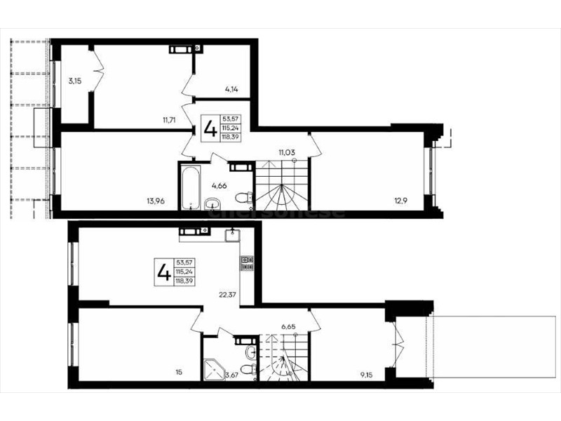 В продаже имеются квартиры в жилом комплексе "Семисчастье" премиум-класса. Общая площадь составляет 118.391 кв.м., при этом кухня - 22,37 кв.м. Высота потолков достигает 2,7 м.