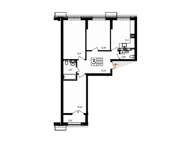 В продаже имеются квартиры в жилом комплексе "Семисчастье" премиум-класса. Общая площадь составляет 78,87 кв.м., при этом кухня - 12,2 кв.м. Высота потолков достигает 2,7 м.