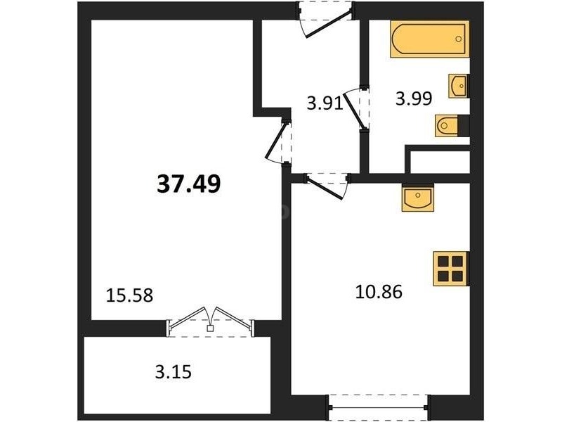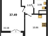 В продаже имеются квартиры в жилом комплексе "Семисчастье" премиум-класса. Общая площадь составляет 37,49 кв.м., при этом кухня - 10,86 кв.м. Высота потолков достигает 2,7 м.