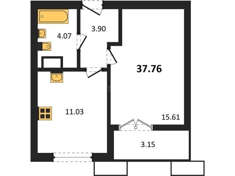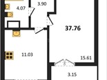 В продаже имеются квартиры в жилом комплексе "Семисчастье" премиум-класса. Общая площадь составляет 37,7608 кв.м., при этом кухня - 16,61 кв.м. Высота потолков достигает 2,7 м.