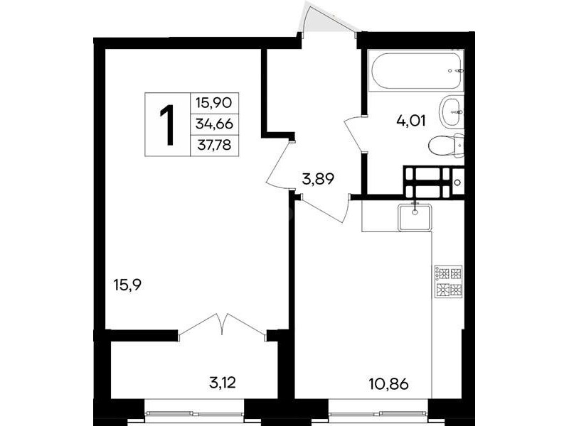 В продаже имеются квартиры в жилом комплексе "Семисчастье" премиум-класса. Общая площадь составляет 37,78 кв.м., при этом кухня - 10,86 кв.м. Высота потолков достигает 2,7 м.