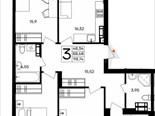 В продаже имеются квартиры в жилом комплексе "Семисчастье" премиум-класса. Общая площадь составляет 98,74 кв.м., при этом кухня - 16,32 кв.м. Высота потолков достигает 2,7 м.
