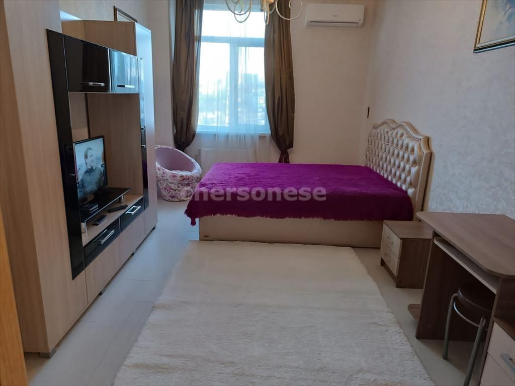 Просторная 1‑комнатная квартира 52 м² на 6 из 10 этажей. Изолированная комната 17 м², кухня 12 м² — удобно для жизни и приема гостей, есть общий большой холл, который используется как общая гостиная. Высота потолков 3 м добавляет воздуха. Выполнен евроремонт. Мебель остаётся. Санузел совмещенный. Есть балкон, откуда открывается прекрасный вид на море Не требует вложений! Очень тихо.