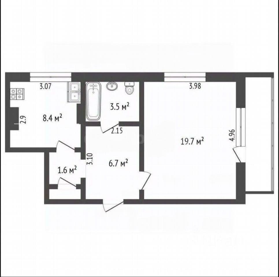 Светлая 1‑комнатная квартира 40,4 м² на 2/10 этаже панельного дома. Удобная планировка: изолированная комната 19,7 м², кухня 8,5 м², потолки 2,6 м. Есть мебель, совмещённый санузел, лоджия, вид во двор и на улицу