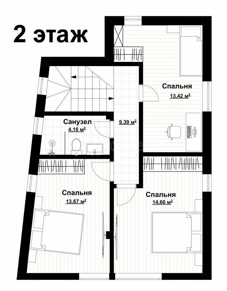 Современный двухэтажный дом из газоблоков площадью 108 м². Три спальные комнаты (13,67м2, 14,66м2, 13,42м2), просторная кухня гостиная 29,37м², а так же 2 санузла более 4м2 каждый создают комфорт для семьи. Дом без внутренней отделки, можно воплотить собственный дизайн, так же застройщик может дополнительно выполнить отделку своими силами.