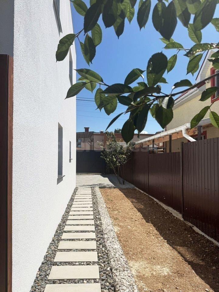 Функциональная планировка с санузлами и гардеробной в доме и удобной лестницей. Большие окна дают много света, открытая веранда 17м2 где в хорошую погоду Вы можете завтракать с мыслью "как же Вам повезло". Во дворе предусмотрено парковочное место на два автомобиля.