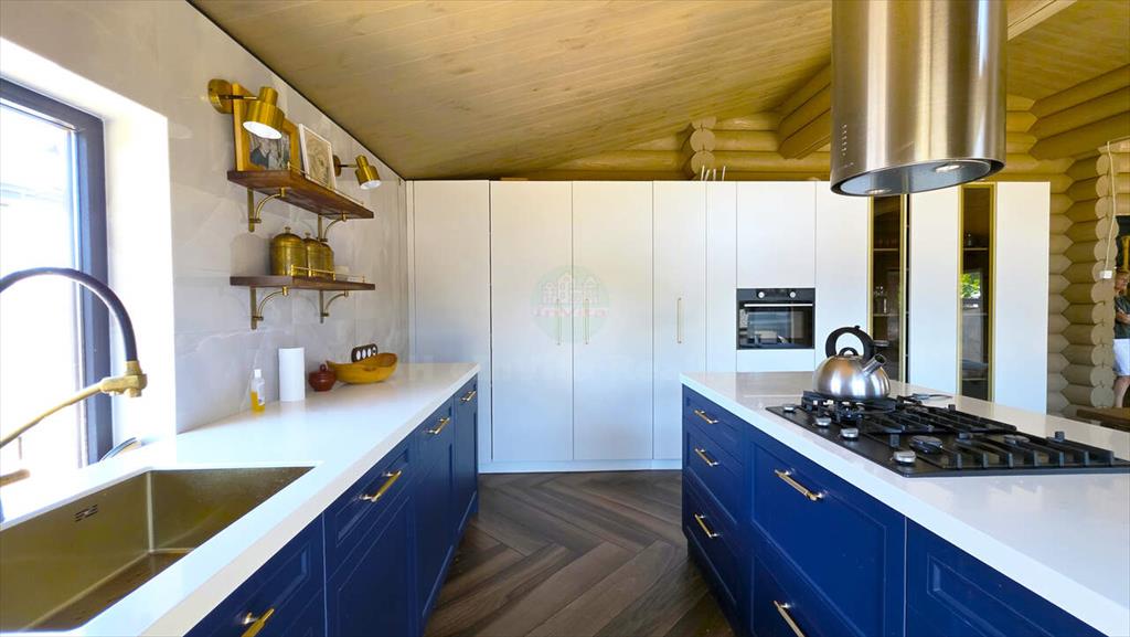 • Родительская спальня 16 м² + кабинет 9 м² с выходом на террасу На участке для семьи и гостей: Просторный мангальный дом с камином-барбекю, печью для казана, мебелью ручной работы, теплым полом и кондиционером — идеальное место для душевных встреч Детский деревянный домик для игр Хозпостройка 18 м² с коммуникациями.