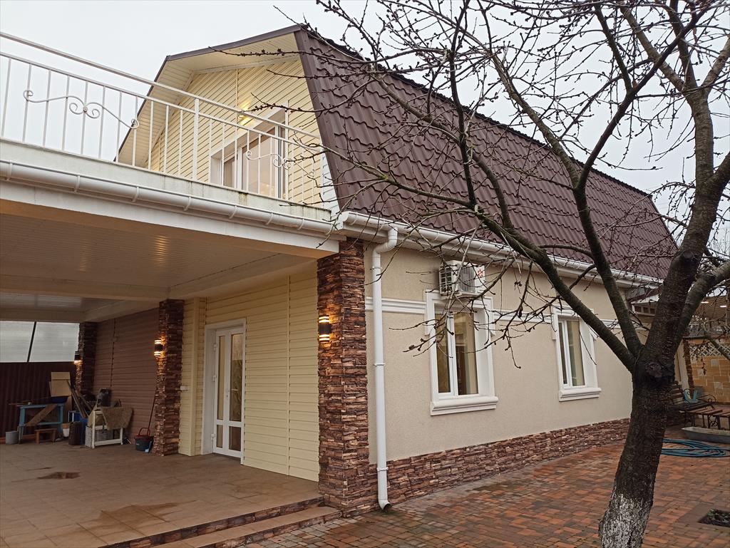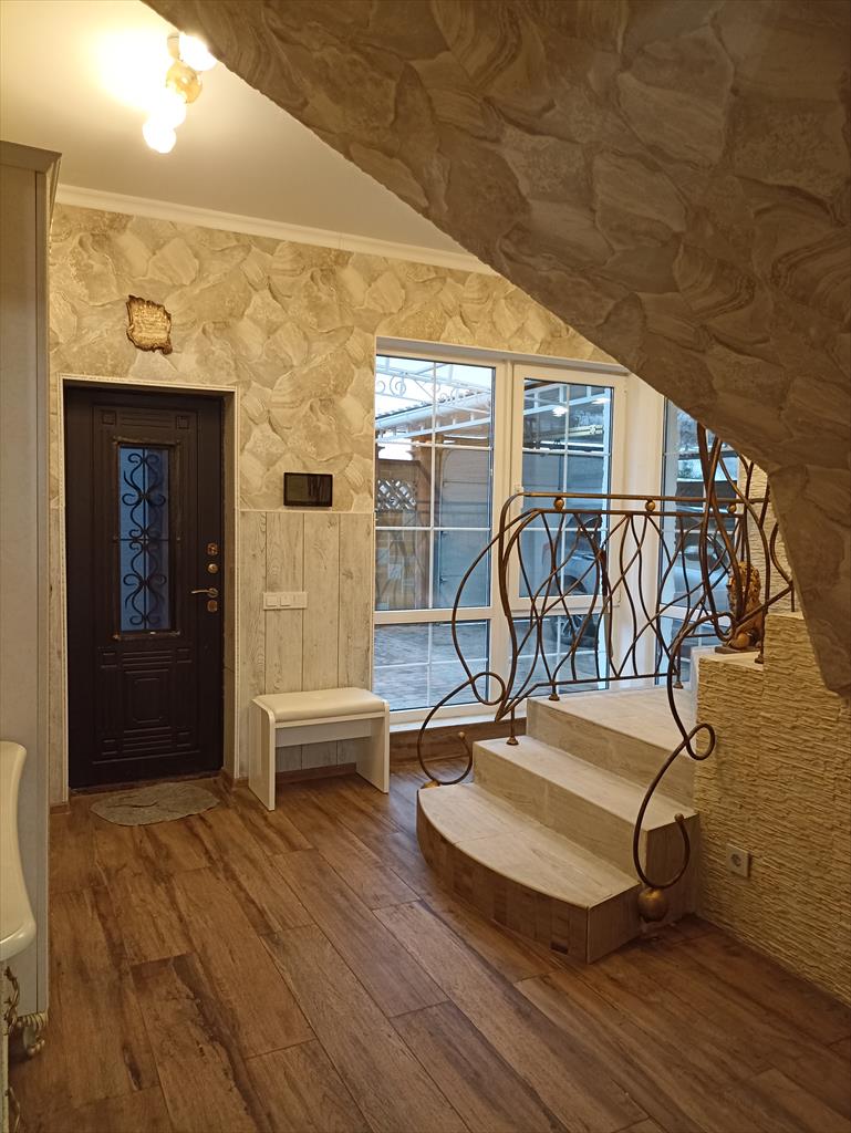 | Предлагаем к покупке двухэтажный, уютный, очень теплый, светлый дом 241 кв.м 2020 года постройки на участке ИЖС площадью 8 соток. При входе в дом вы попадаете в просторную прихожую, из которой можно пройти по первому этажу или подняться на второй. На первом этаже расположены просторная гостиная с выходом на террасу , большая кухня, санузел и гостевая спальня. На второй этаж ведет красивая капитальная лестница. На втором этаже две большие светлые спальни с окнами в пол, одна из которых совмещена с кабинетом и гардеробной, и санузел.Из обеих спален предусмотрены выходы на огромную террасу второго этажа, с которой вы сможете наблюдать шикарные крымские восходы и закаты. Во всем доме качественная импортная мебель. Дом оборудован 2 кондиционерами, видеонаблюдением, домофоном (управляется телефоном), подсветкой по периметру дома и забору. Отопление газовое (двухконтурный котел Bosch), электричество и центральная вода. Также на участке есть действующий колодец и септик большого объема. Участок ровный. Вокруг дома посажены плодовые и декоративные растения, оборудовано капельным поливом. Большая часть участка за домом готова для реализации ваших планов по ландшафтному дизайну. Весь участок огорожен забором, по фасаду - из французского камня. Въезд автомобилей во двор через автоматические ворота с парковкой 2 авто под навесом. По необходимости можно разместить до 7 авто на территории около дома. Вся территория вокруг дома выложена красивой брусчаткой, оборудована стоками для воды. Дом строился для себя, пустым не стоял, продается в связи с переездом. Домовладение расположено в спокойном микрорайоне с хорошими соседями, в месте, где вся инфраструктура в шаговой доступности: школа и детские сады в 10 минутах ходьбы, магазины, аптеки на соседних улицах, близко и рынок, где всегда свежие фермерские продукты, рядом авто- и железнодорожный вокзалы. За 15 минут можно доехать до Симферополя, за 30 минут до западного побережья Черного моря. Удобная транспортная развязка: до Симферополя можно добраться либо по Московской трассе, либо по Евпаторийскому шоссе. Также они обеспечивают логистику в любой уголок Крыма. Один собственник. Документы готовы к продаже |