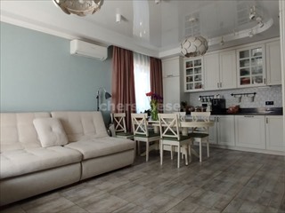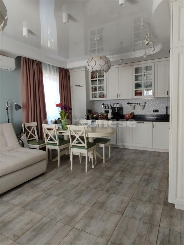 В доме отдельные 2 спальни, санузел и огромная кухня-гостинная. Ремонт очень качественный и выполнен со вкусом. Дом строился из ракушки, утеплён минеральной ватой, отделка из камешковой штукатурки.Внутри все стены выравнивались под покраску, но в данный момент наклеены немецкие обои. Установлен кондиционер Mitsubishi, котлы Vaillant, холодильник Libherr, бойлеры Haier. Электричество 3 фазы, день-ночь. В доме установлены радиаторы, я также тёплые полы.