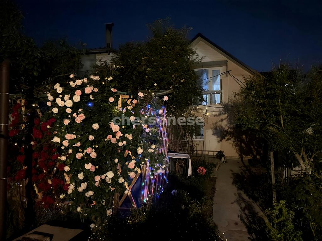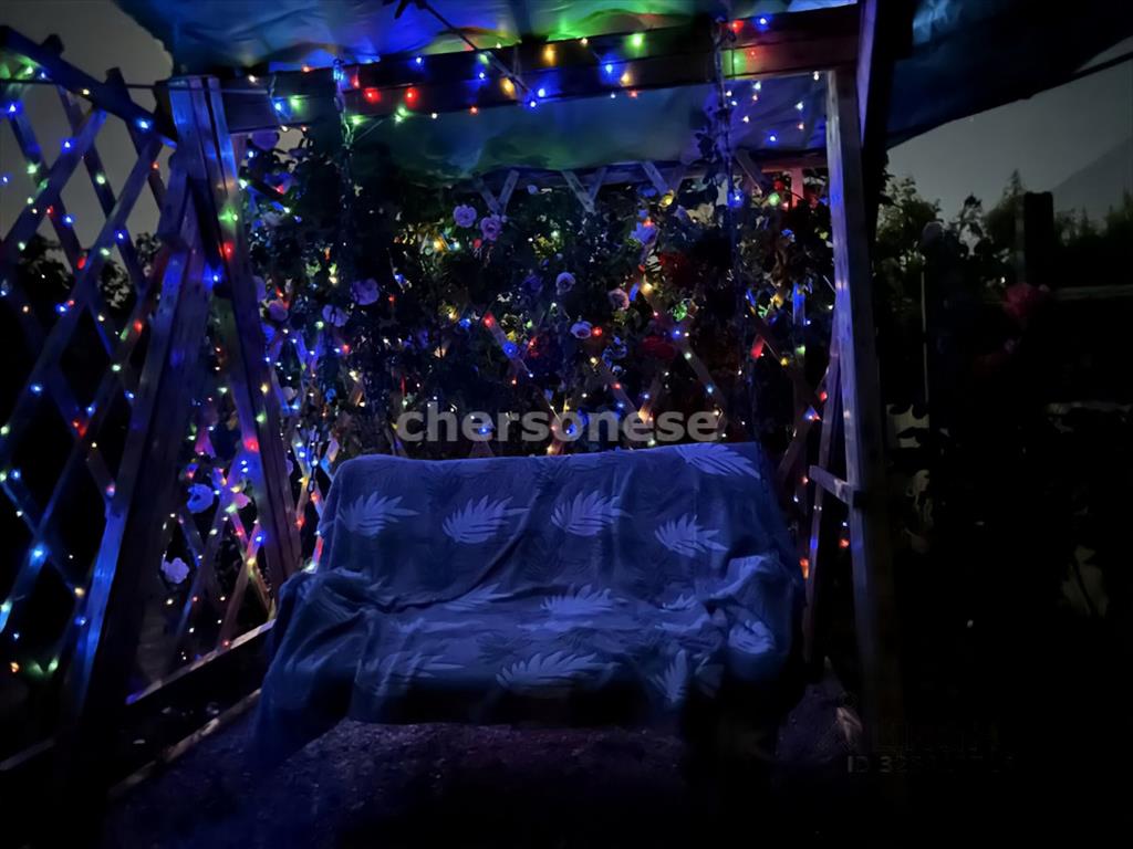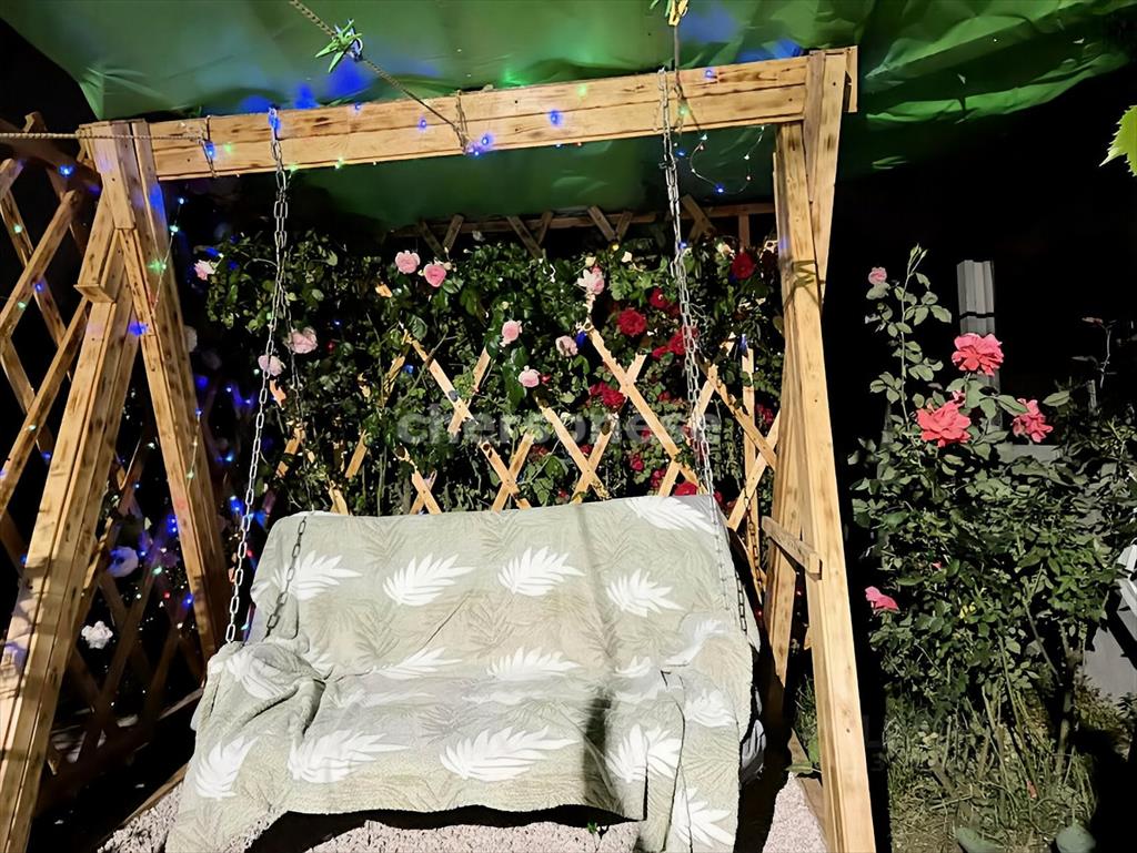 Во дворе - летняя зона отдыха, беседка, качели и фруктовый сад.